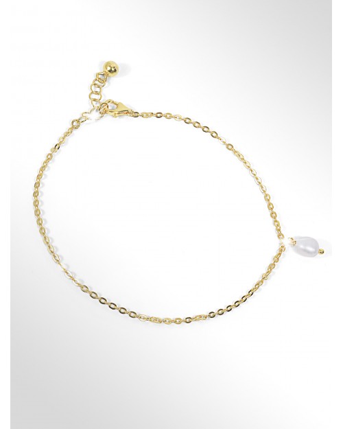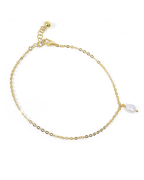 Made in Italy Anklet Sterling Silver 18kt gold plated Diamond cut curb chain Pearl