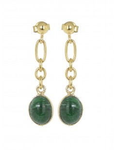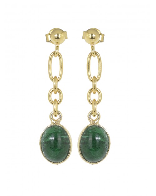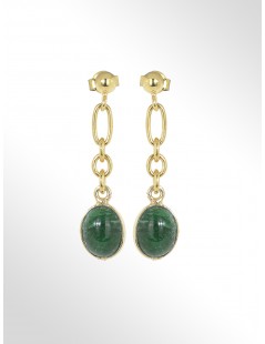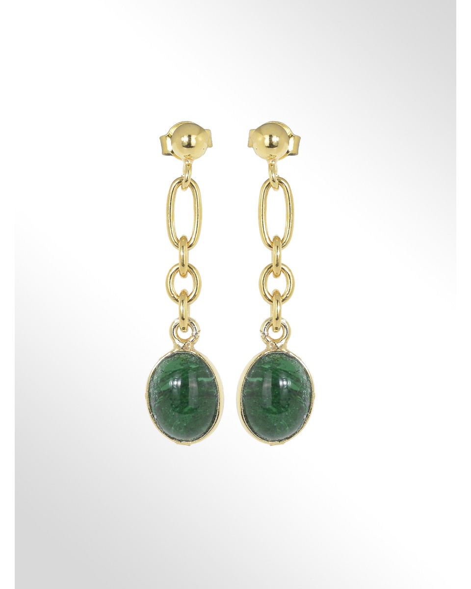 Made in Italy Stud Earrings Sterling Silver 18kt gold plated Diamond cut chain Malachite cabochon