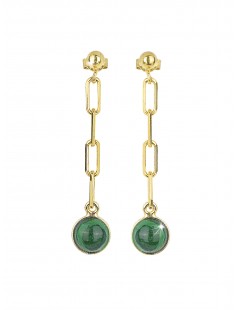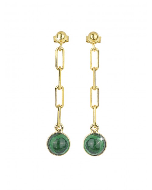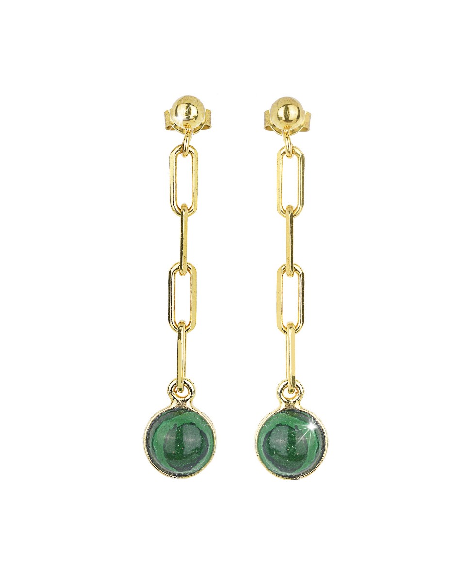 Made in Italy Stud Earrings Sterling Silver 18kt gold plated Diamond cut chain Malachite cabochon