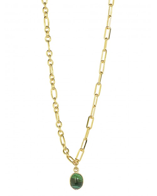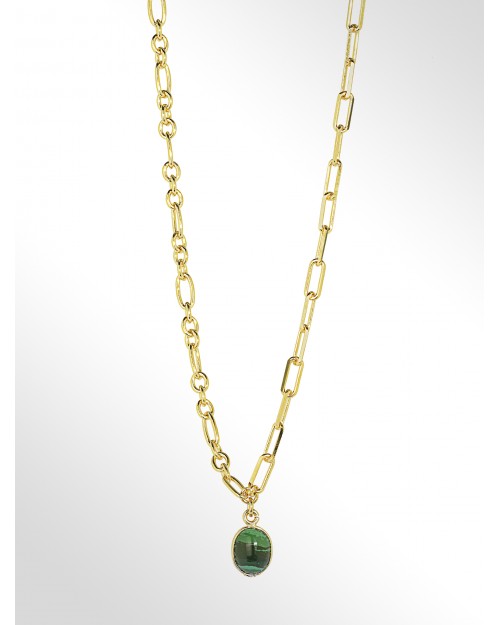 Made in Italy Necklace Sterling Silver 18kt gold plated Diamond cut paperclip Figaro chain Malachite oval pendant