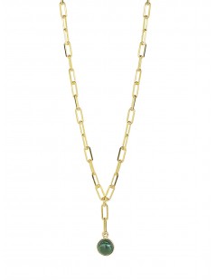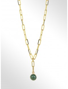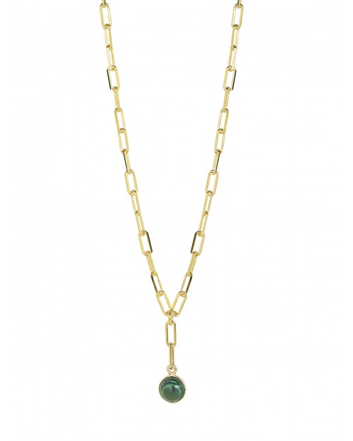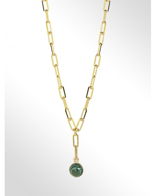 COLLANA IN ARGENTO 925 PLACCATA ORO GIALLO 18KT (SPESSORE 1MC COMM) CON CABOCHON DI MALACHITE