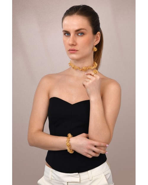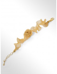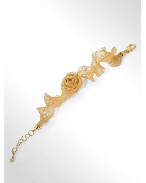 Bracciale in Tessuto argento 925 con Fiore Rosa Placcato oro 18kt