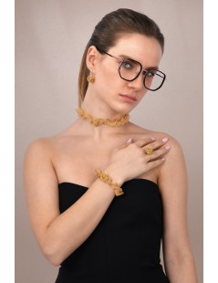 Questo bracciale in tessuto d’argento è il compagno ideale della nostra sciarpa o del choker coordinato, realizzato in Toscana con meticolosa attenzione ai dettagli. Il delicato tessuto a mesh e i dettagli floreali brillano alla luce come un raggio di sole mediterraneo, donando al polso una preziosa e discreta luminosità. Leggero, confortevole e versatile, completa il tuo look con eleganza raffinata.